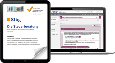 Die Stbg als E-Paper bietet Ihnen kurz und bündig einmal im Monat alle wichtigen Informationen für Ihre fachliche Beratung und für die Kanzleiorganisation. Lesen Sie regelmäßig aktuelle Fachbeiträge zum nationalen und internationalen Steuerrecht, Steuerstrafrecht, zur Rechnungslegung, zum Wirtschafts-, Arbeits- und Sozialrecht, zu betriebswirtschaftlichen Themen und zu neuen Beratungsfeldern sowie zum Berufsrecht.